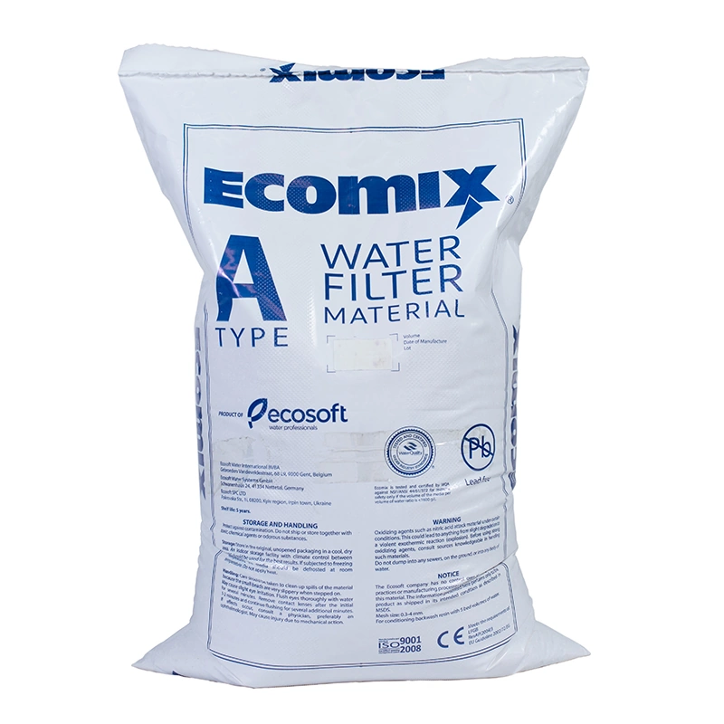 Mediu filtrant ECOMIX are capacitatea de a reduce duritatea si de a retine fierul, manganul, materia organica si amoniul.